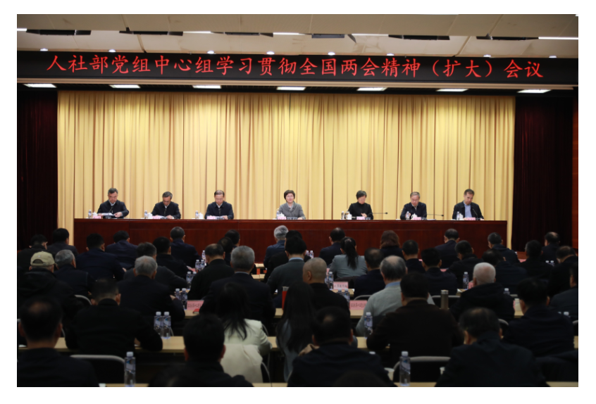 3月13日,人力资源社会保障部党组召开理论学习中心组学习扩大会议,传达学习全国两会期间习近平总书记重要讲话和两会精神,部署推进贯彻落实工作。部党组书记、部长王晓萍主持会议并讲话。部党组成员出席会议。